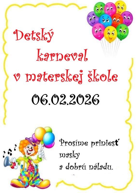 Dňa 06.02.2026 sa v Materskej škole v Dlhej bude konať detský karneval.